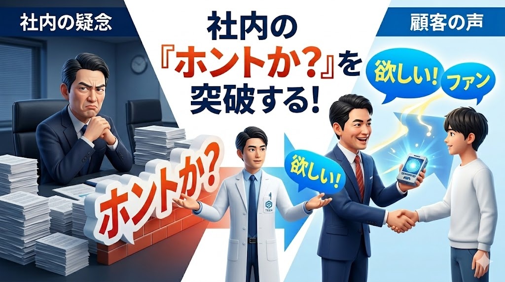 社内の「ホントか?」という疑念を、顧客の「いつから使える?」という期待に変えていくこと。