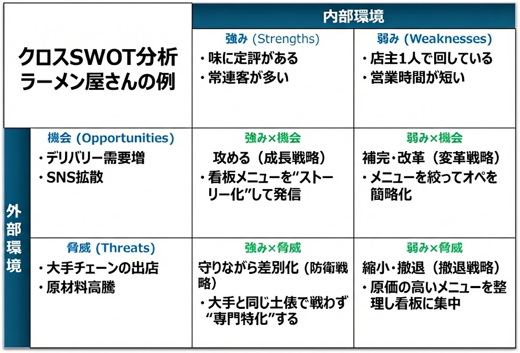 【実践編】クロスSWOTのやり方:町のラーメン屋で「4象限の戦略」を作ってみた